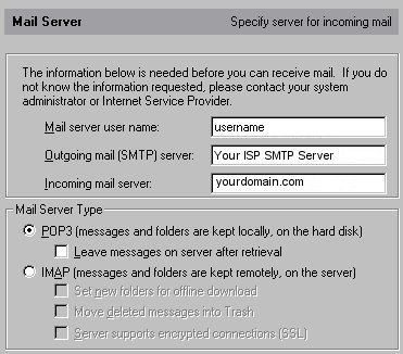 the SMTP server field is filled with Your Local Internet Service Provider's SMTP server. In case you do not know the SMTP server name, please call you Internet